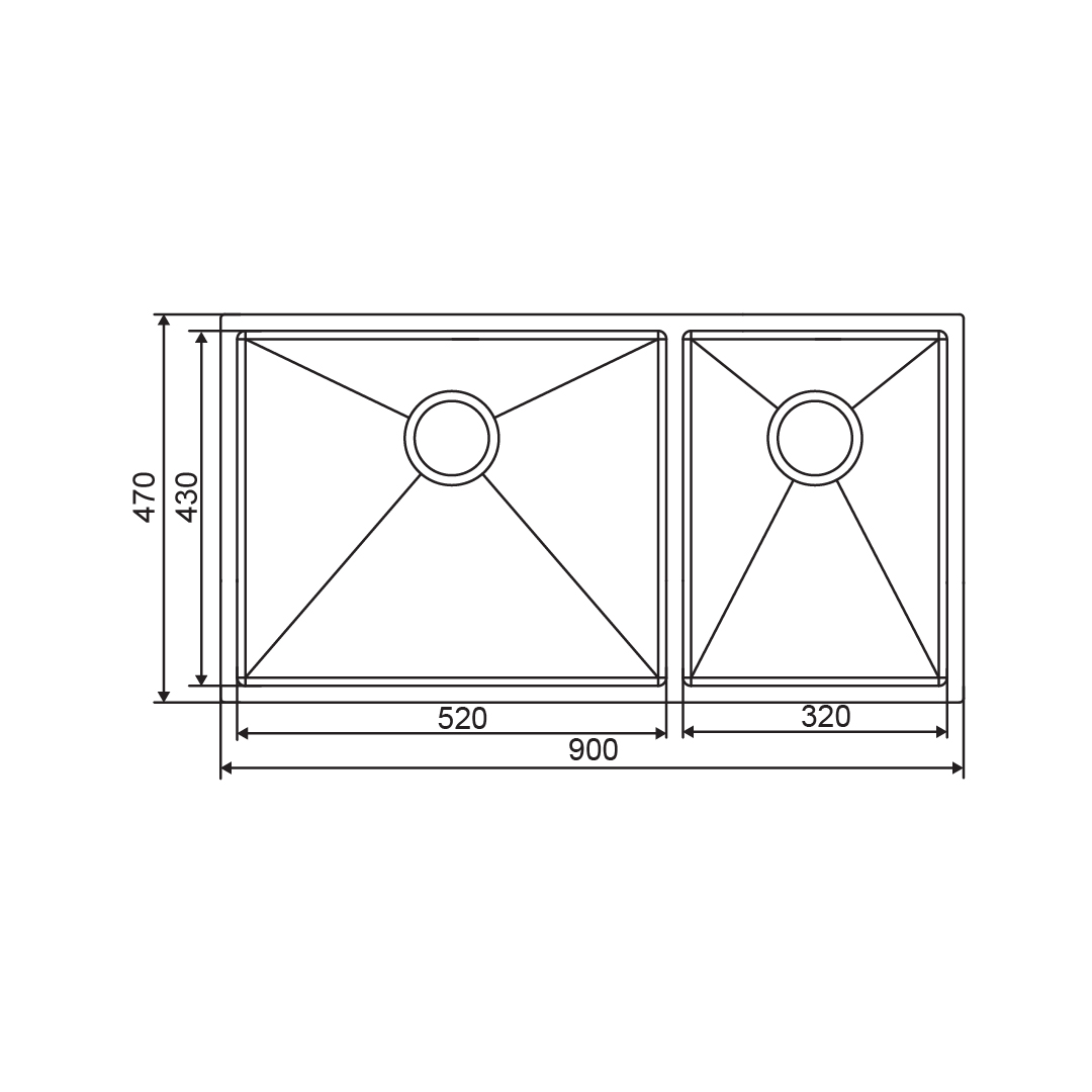 • Bowl Size : (L)520 x 430mm (R)320 x 430mm
